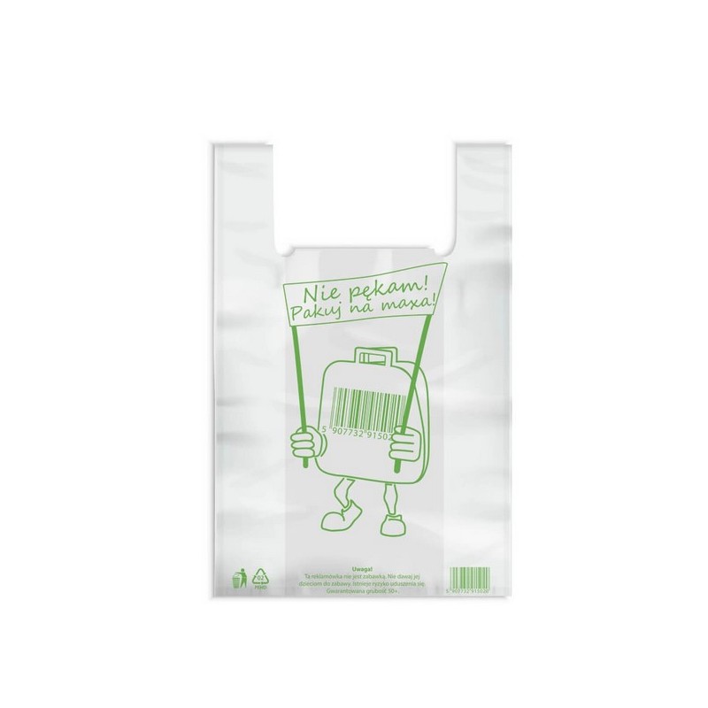 HIT SPRZEDAŻOWY Reklamówka bardzo gruba i wytrzymała z nadrukiem. Wymiar 29/54/7cm, pojemność 10 kg, ilość 100 sztuk.