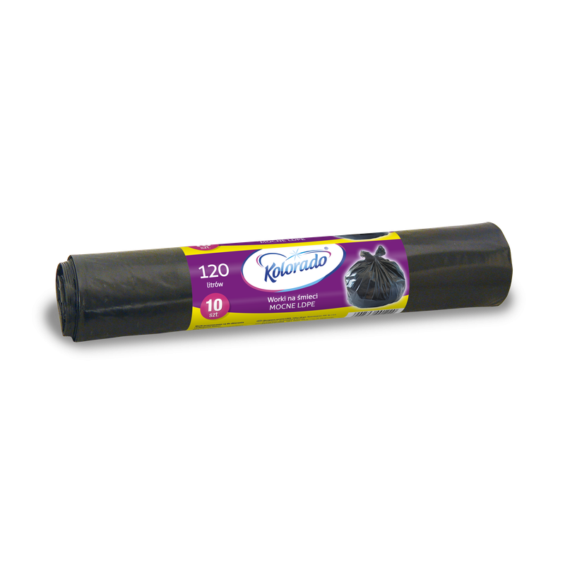 Worki na śmieci wykonane z folii LDPE (mocne) Rozmiar worka: 120 l, 108x73 cm. Na rolce 10 sztuk.